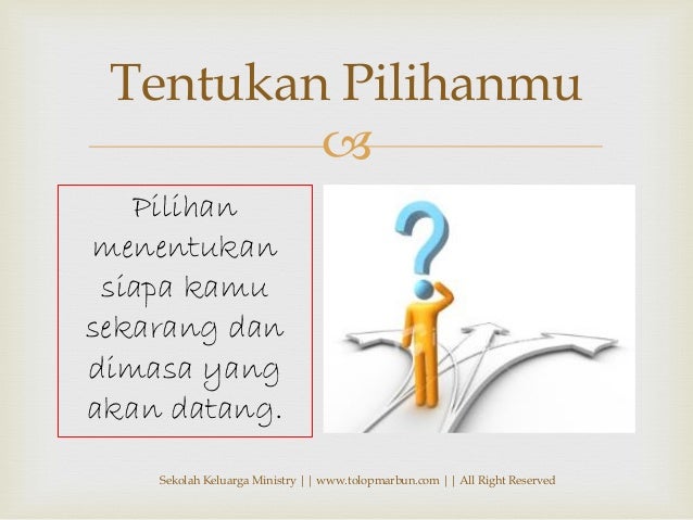 - Tentukan Pilihanmu Pilihan menentukan siapa kamu sekarang dan dimasa yang akan datang. Sekolah Keluarga Ministry