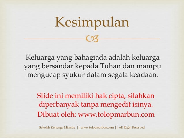 - Keluarga yang bahagiada adalah keluarga yang bersandar kepada Tuhan dan mampu mengucap syukur dalam segala keadaan.